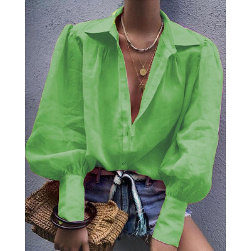 More information about Women's Shirt Blouse Plain Streetwear Casual Long Sleeve Shirt Collar Regular Tops Office Work Business Buttons Black White Pink Orange Green Spring Fall