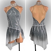 More information about Figure Skating Dress Women's Girls' Ice Skating Dress Grey Patchwork Asymmetric Hem Mesh Spandex High Elasticity Training Competition Skating Wear Classic Crystal / Rhinestone Sleeveless Ice Skating