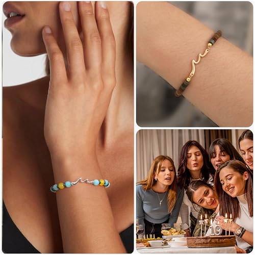 HOT ! 30th 40th 50th 60th 70th Birthday Gifts for Women Beaded Bracelets for Women with Wave, Wave Bracelet for Woman 10th 13h 16th 21st Bithday Gifts for Teen Girl Trendy Stuff Sister Friend Inspirational Get Well Feel Better Gift Jewelry