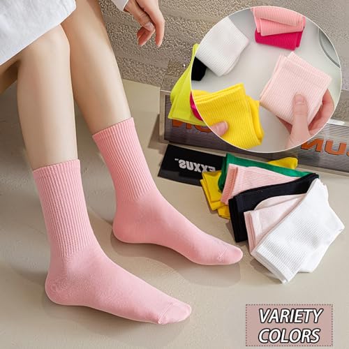 CHUNFO Colorful Womens Classic Solid Ankle Fun Cute Cotton Running Athletic Dress Crew Socks 6Pairs 7