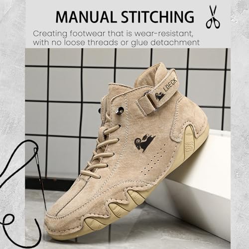 • 【Men Handmade Suede High Boots】Premium Suede Upper, Each pair of shoes is carefully crafted, are upper and sole are hand-sewn, the stitching is firm and not easy to break, and the shoe and foot can be perfectly combined, Provide you with a comfortable foot feel and fully protect your feet.
