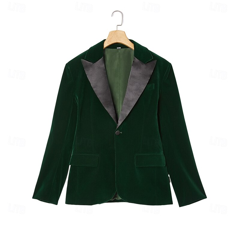 Men's Blazer Jacket Tuxedo Closure collar Christmas Vintage Solid Colored Blazer Red Green Standard Fit 12