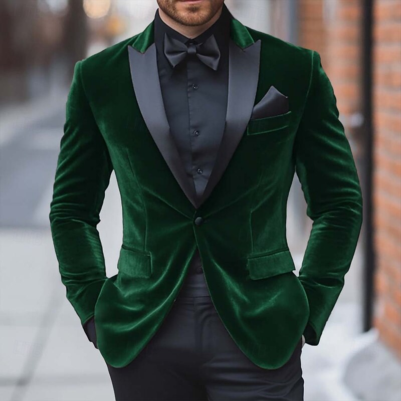 HOT ! Men's Blazer Jacket Tuxedo Closure collar Christmas Vintage Solid Colored Blazer Red Green Standard Fit