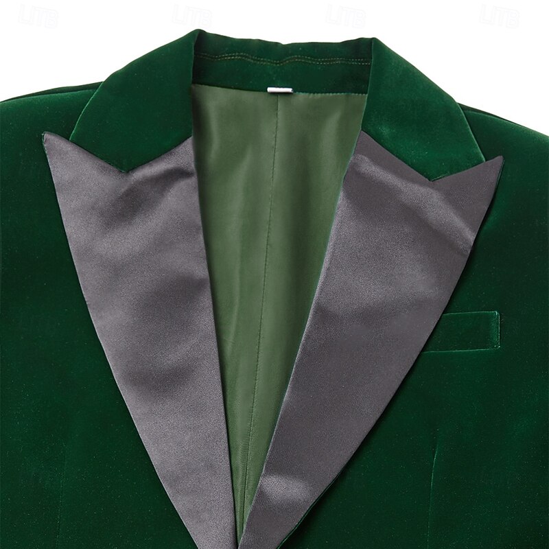 Men's Blazer Jacket Tuxedo Closure collar Christmas Vintage Solid Colored Blazer Red Green Standard Fit 1