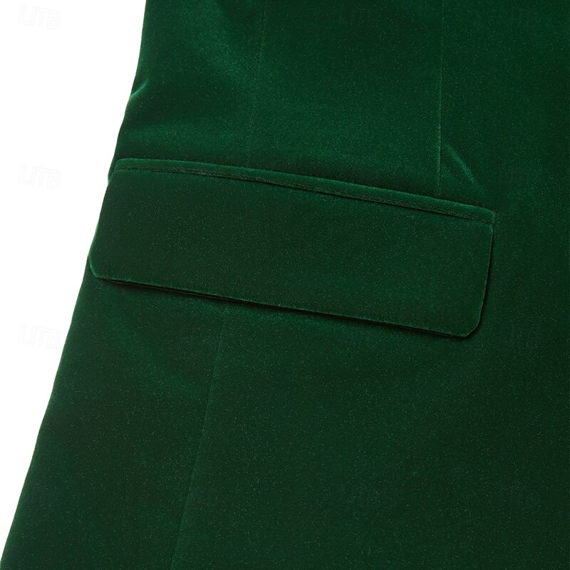 Men's Blazer Jacket Tuxedo Closure collar Christmas Vintage Solid Colored Blazer Red Green Standard Fit 3