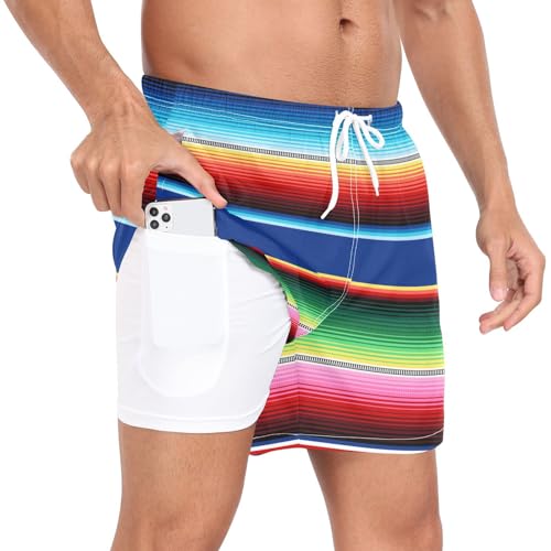 HOT ! Mexican Serape Blanket Stripes Mens Swim Trunks,4.7" Inseam Quick Dry Lightweight Swimming Shorts#479