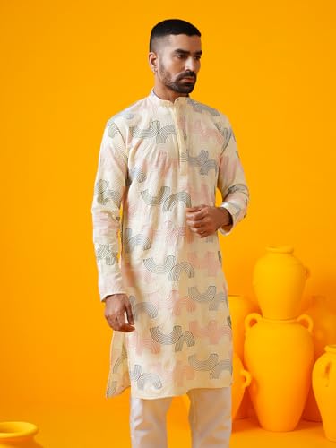 HOT ! Sojanya (Since 1958 Men'S Cotton Silk Multi Thread Embroidered Kurta With White Pyjama