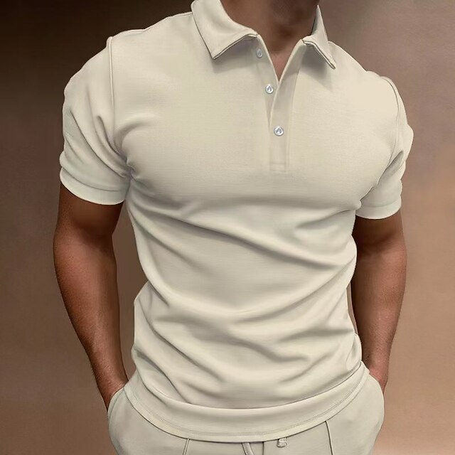 Men's Polo Shirt Work Street Classic Short Sleeves Basic Solid / Plain Color Basic Summer Regular Fit Black White Dark Navy Green ash-colored khaki Polo Shirt 8