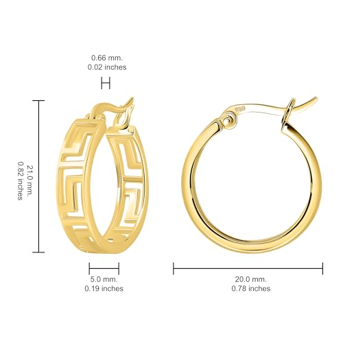More information about Hoops & Loops 925 Sterling Silver Greek Key Round Click-Top Hoop Earrings for Women, 15mm, 20mm | Silver, Yellow Gold, Rose Gold