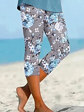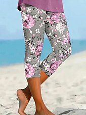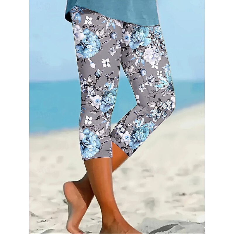 More information about Women's Leggings Vacation Vintage Ethnic Style Calf-Length High Waist Floral Graphic Leaf Soft Comfortable Breathable Stretchy Vacation Street Causal Violet Dusty Rose Light Blue Summer Spring Fall
