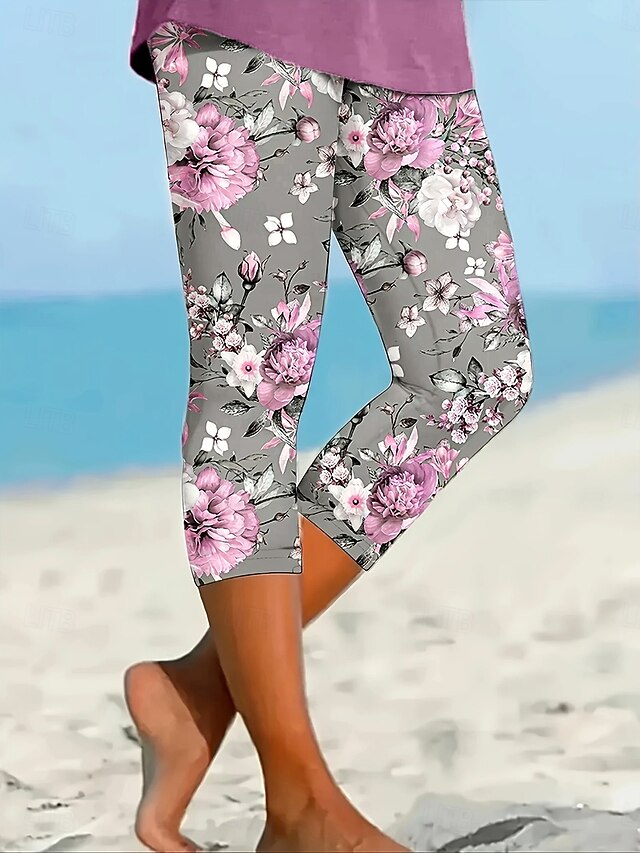 HOT ! Women's Leggings Vacation Vintage Ethnic Style Calf-Length High Waist Floral Graphic Leaf Soft Comfortable Breathable Stretchy Vacation Street Causal Violet Dusty Rose Light Blue Summer Spring Fall