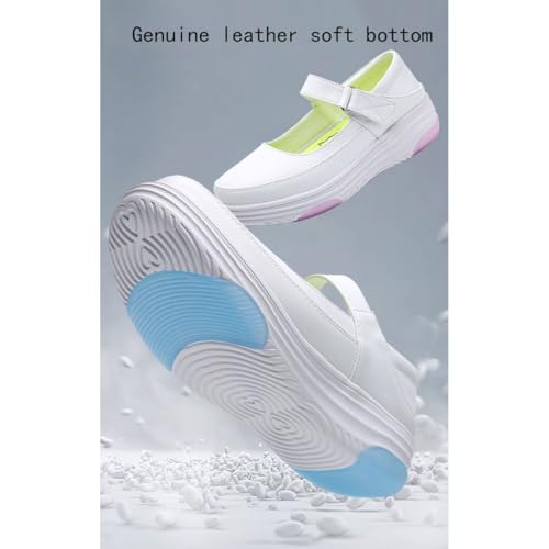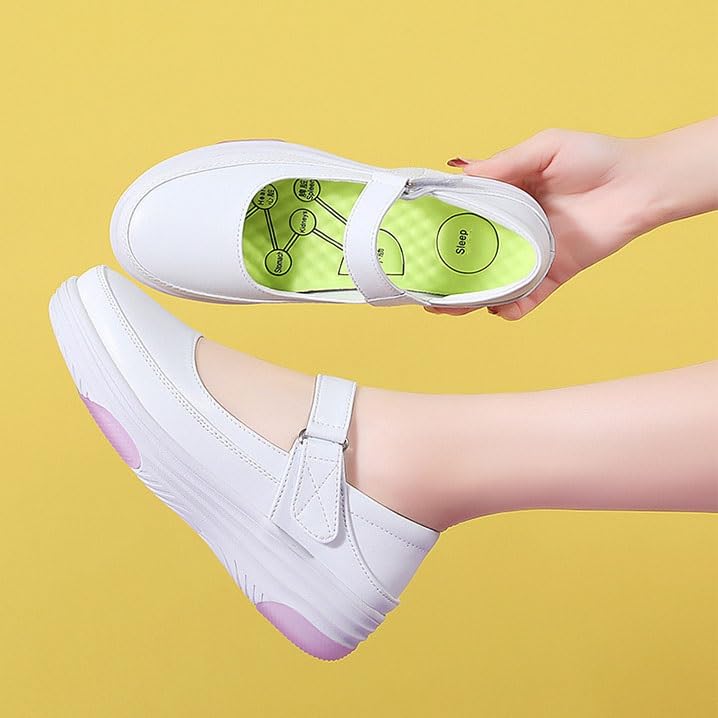 CLSQLXYJZC Women's Lightweight Nursing Shoes, Spring Leather Slip Resistant Adjustable Breathable Walking Nursing Orthotic Shoes, Fashion Comfort Nursing, for Hospital Nurse Doctors 4