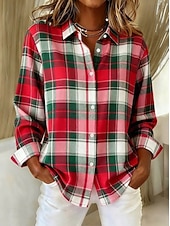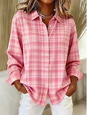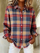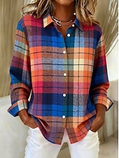 More information about Women's Shirt Blouse Plaid Casual Long Sleeve Shirt Collar Regular Tops Daily Patchwork Buttons Print Light Green Pink Red Blue Orange Spring Fall Winter