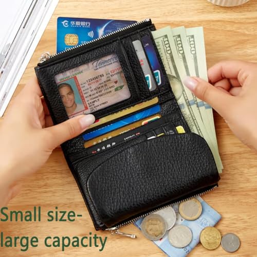 HOT ! Unisex Pebble Leather Wallet,Short Slim Soft Genuine Leather Purse with Credit Card Holder & Cash Slots,Full Grain Small Compact Bifold Pocket Coin Purse,Multicolor Zipper Coin Holder(Black+red)