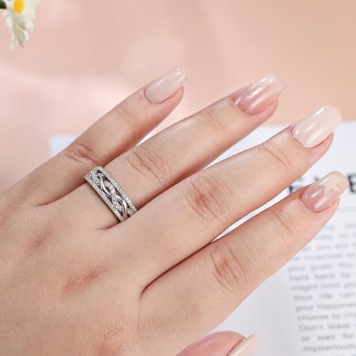 Newshe Jewellery Moissanite Wedding Bands for Women 925 Sterling Silver Eternity Rings Promise Engagement Ring Twisted Size 5-10 6