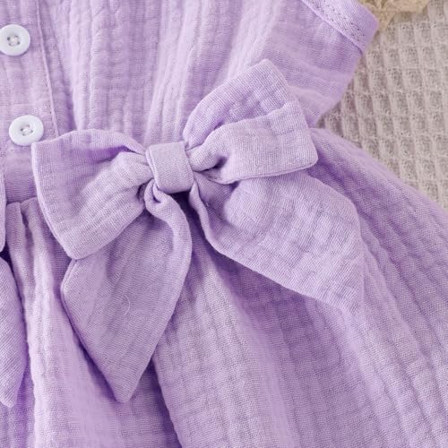 • Adorable Bow & Button Details: The sleeveless top features a charming double-layer design with three front buttons and two decorative bow accents, adding a sweet and stylish flair. The ruffle-trimmed shorts come with functional pockets and an elastic waistband, combining cuteness with practicality for easy movement and dressing.
