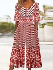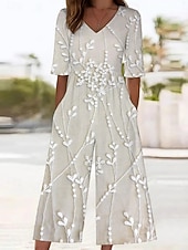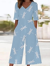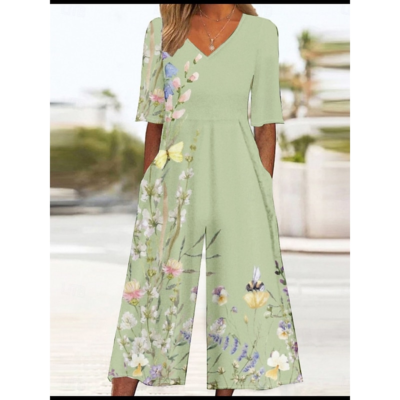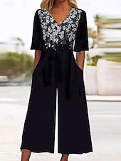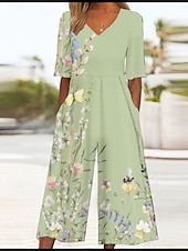 More information about Women's Normal Jumpsuit Active Floral 3/4 Length Sleeve Wide Leg V Neck High Waist Vacation Daily Regular Fit Black Red Blue Summer