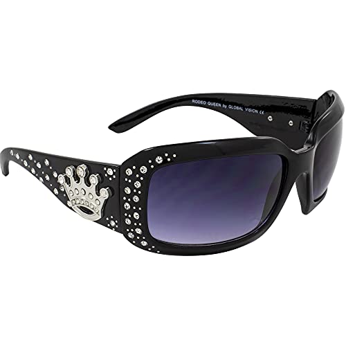 Rodeo Queen Gloss Black Western Motorcycle Sunglasses for Women with Bling Rhinestones Smoke Gradient Lenses 1
