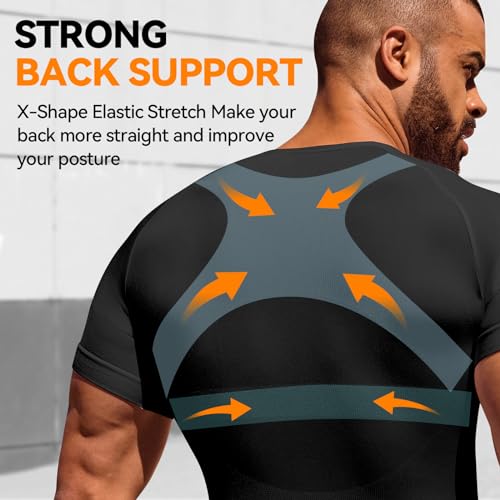 • X-BACK SUPPORT SHAPEWEAR: The mens compression shirt Ergonomic criss-cross bands relieve pressure on shoulder and provide support for back. You won't feel tired after wearing this compression shirt men all day because the W-shaped bust design effectively hides the chest from strangulation and breathes freely