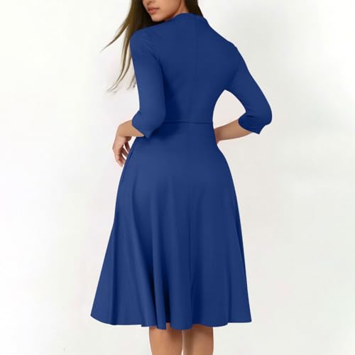 HOT ! Women's Semi Formal A-Line Casual Dress, 3/4 Sleeve V-Neck Church Work Dresses Solid Color Basic Outfits with Pockets