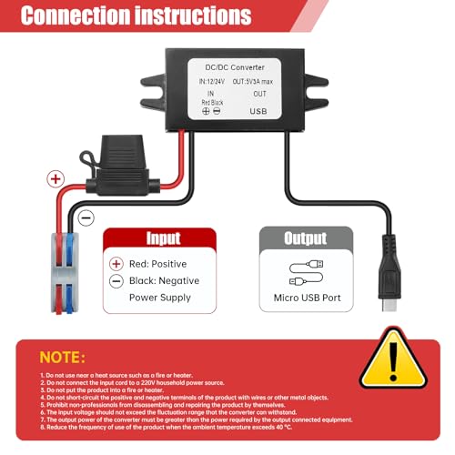 • Easy to Install: Pull of the key 90°MAX, insert the wire, press the key tightly; The converter has a red and black wire, the red is connected to the positive electrode, and the black is connected to the negative electrode