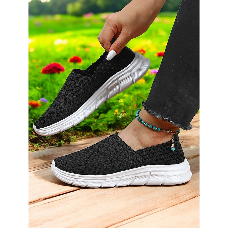 Slip-On Sneakers for Women – Breathable Woven Design with Comfortable Soles, Ideal for Spring and Summer Casual Outings 1