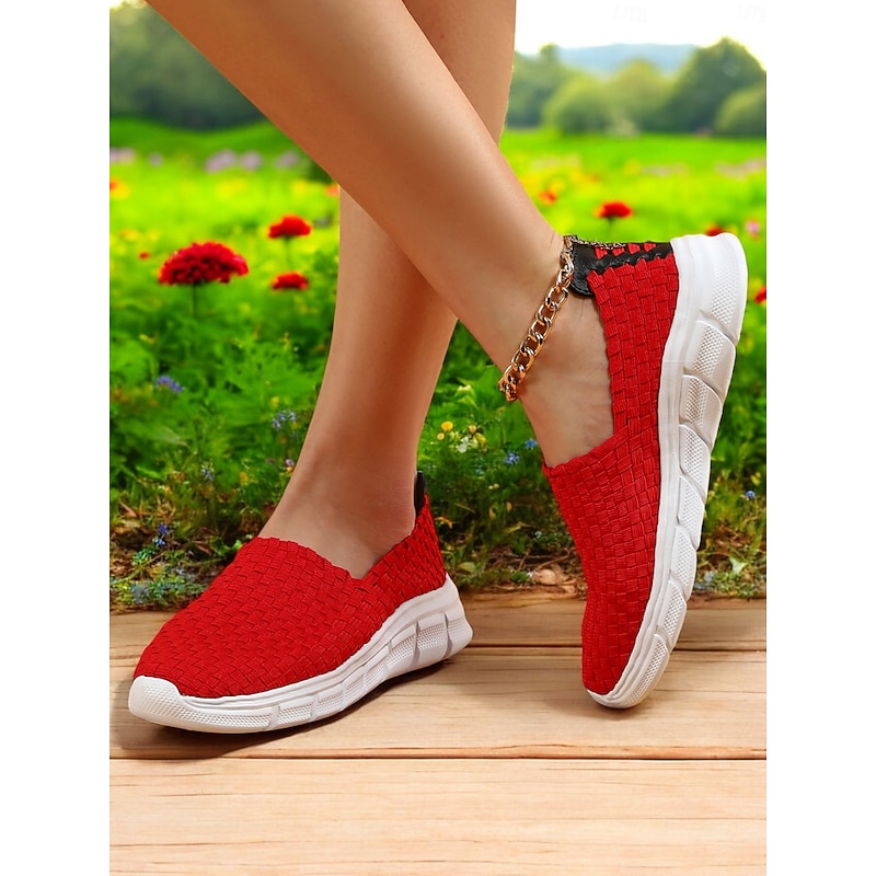 HOT ! Slip-On Sneakers for Women – Breathable Woven Design with Comfortable Soles, Ideal for Spring and Summer Casual Outings