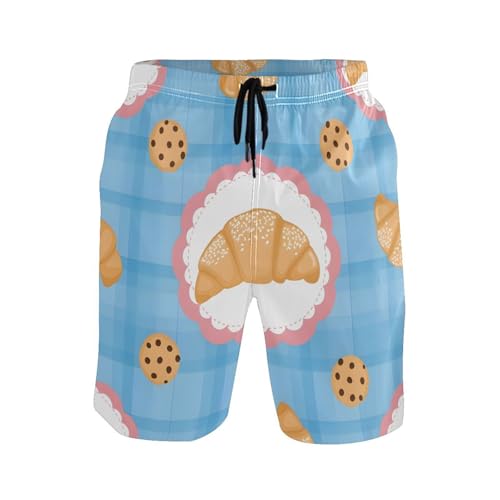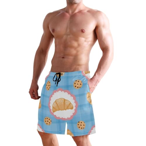 HOT ! Men's Swim Trunks Quick Dry Swimming Shorts with Pocket Croissant and Cookie Pattern Swimsuit Trunks