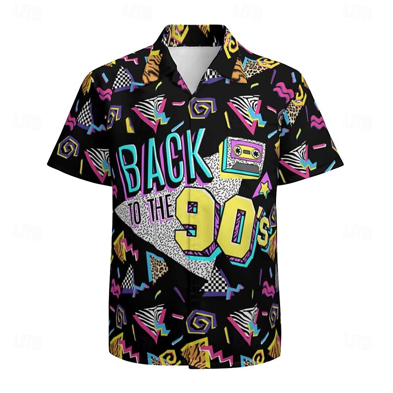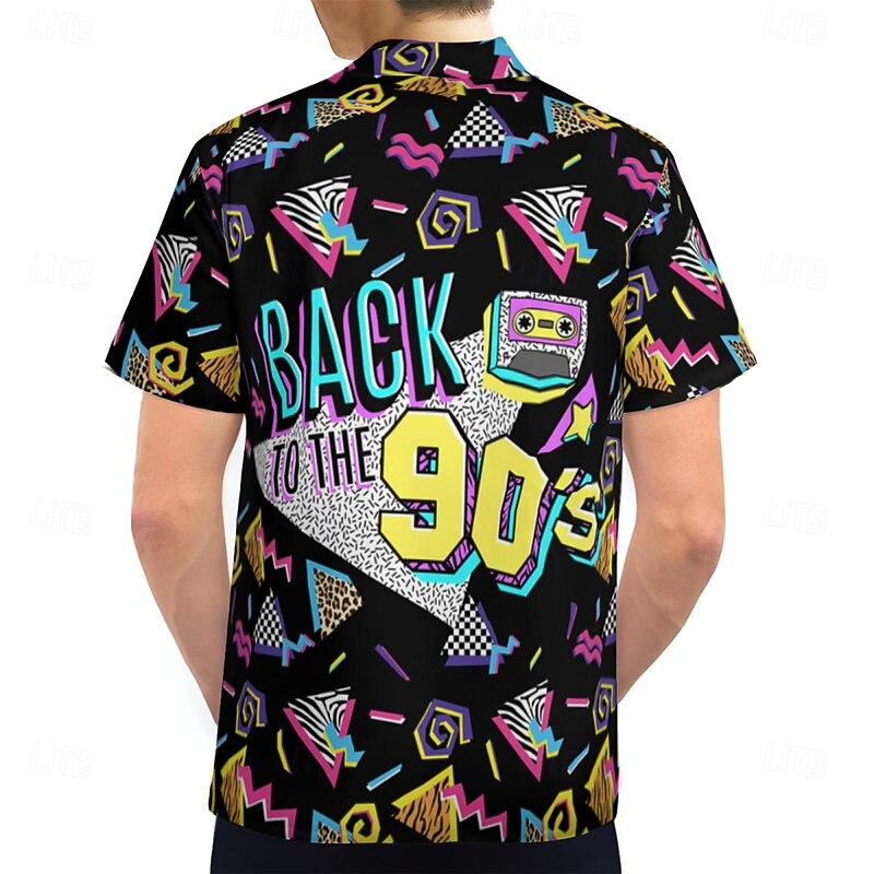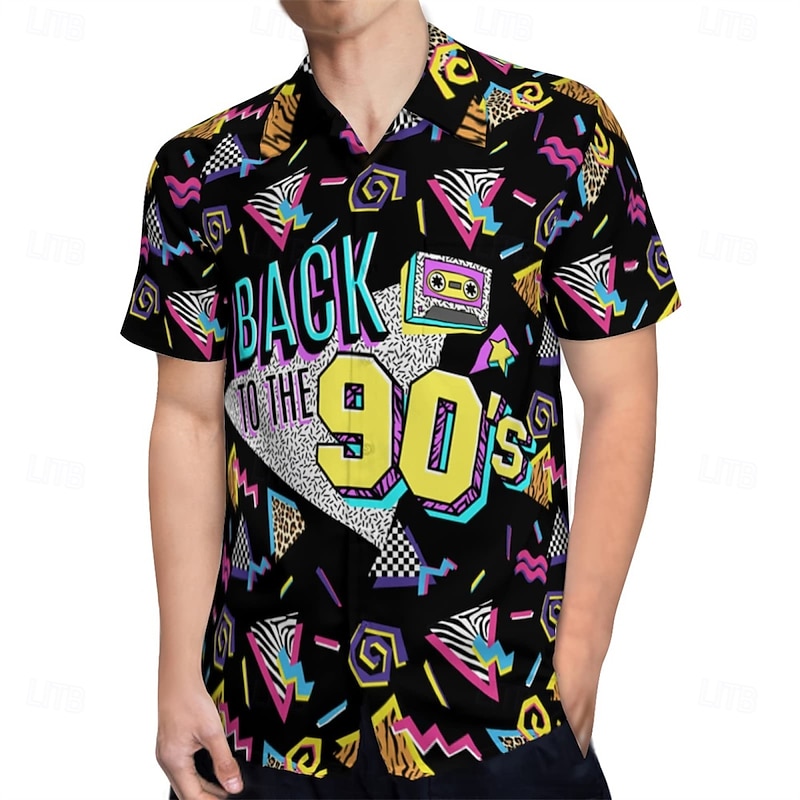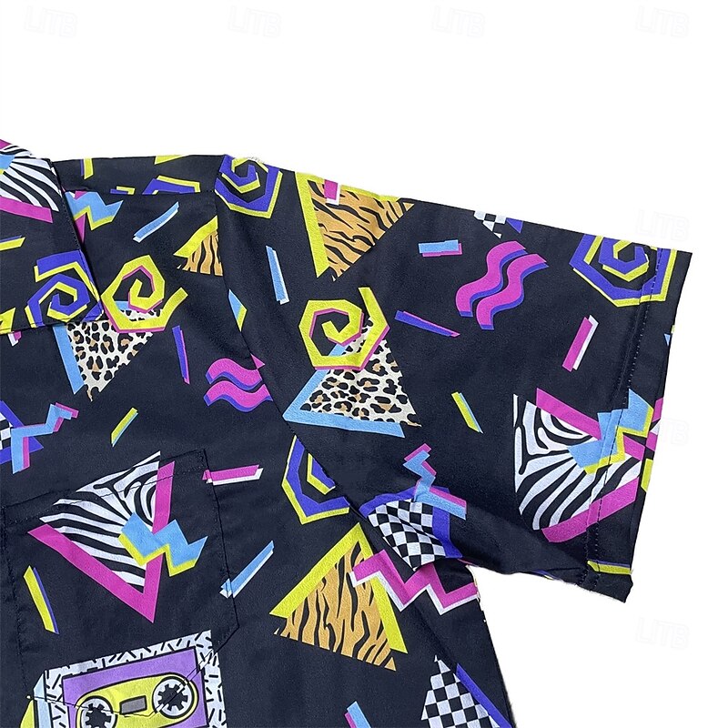 Retro Vintage 1980s Shirt Aloha Shirt Disco Geometric Fancy Dress Men's Vacation Party Pride Parade Adults' Shirt 17