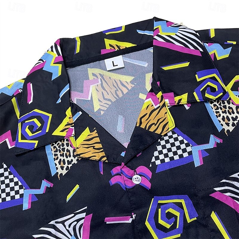 Retro Vintage 1980s Shirt Aloha Shirt Disco Geometric Fancy Dress Men's Vacation Party Pride Parade Adults' Shirt 6