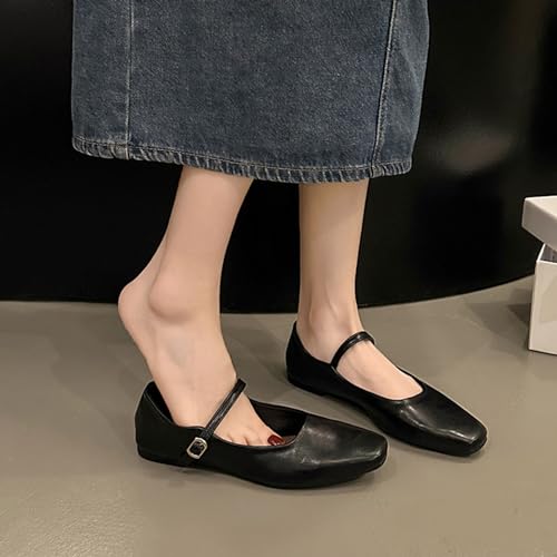 Women's Classic Retro Square Toe Flat Mary Jane Shoes Fashionable and Comfortable Walking Flat Shoes with Buckles 6