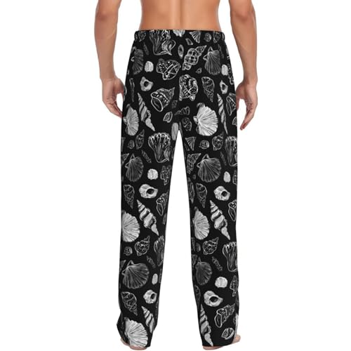HOT ! Mens Pajama Pants - Black Sketch Shells Print Soft Sleep Lounge Pants For Men, Casual Pj Bottoms With Pockets