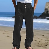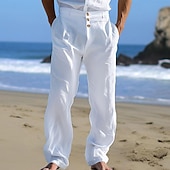 More information about Men's Linen Pants Trousers Summer Pants Beach Pants Front Pocket Straight Leg Plain Comfort Breathable Business Casual Daily Fashion Holiday Black White