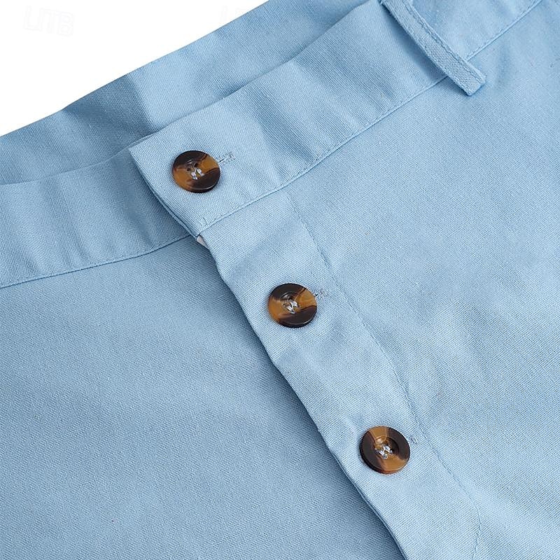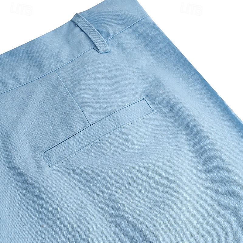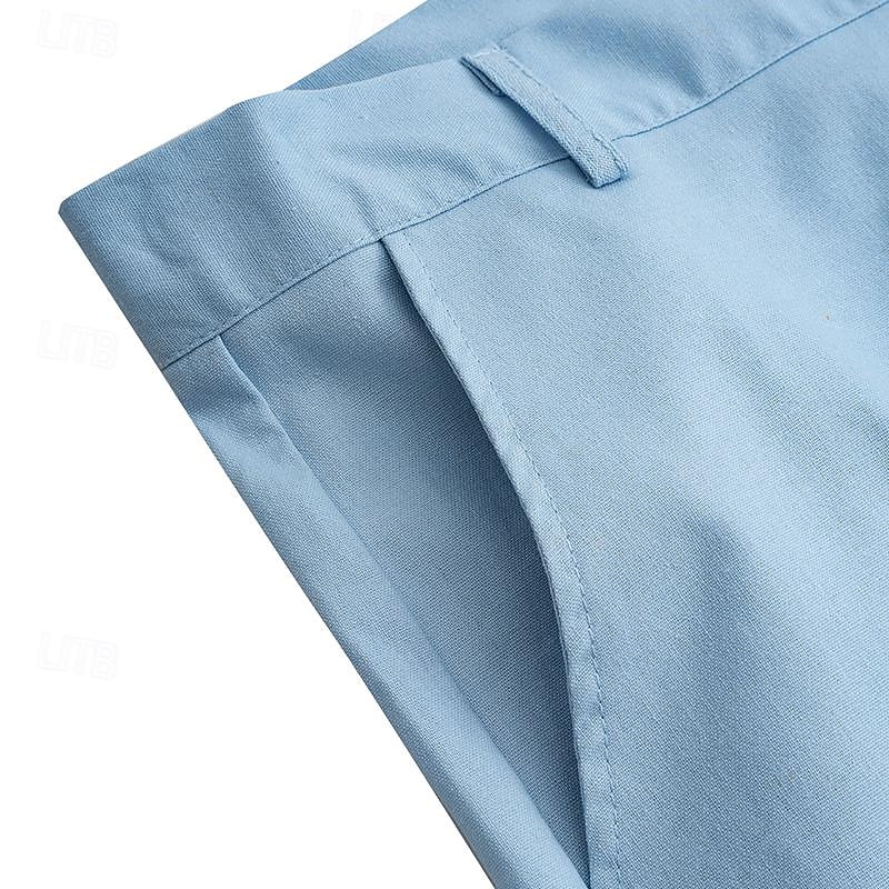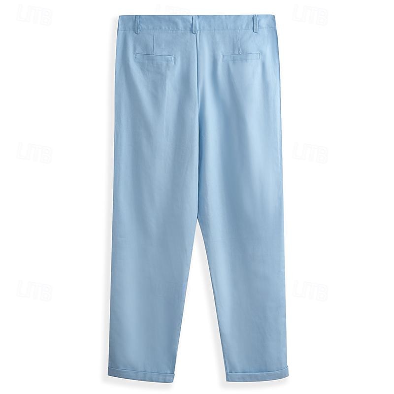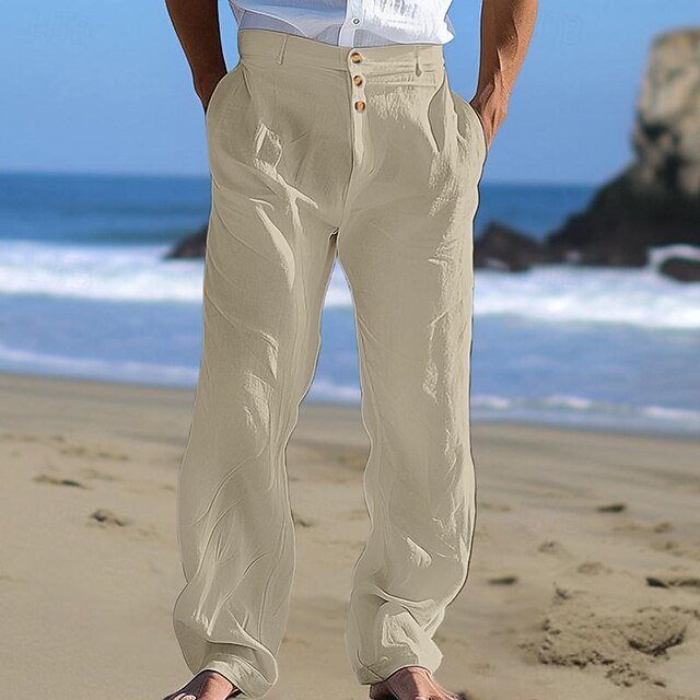 Highlights [Fabric] : Constructed from a high-quality linen and cotton blend, these trousers provide a breathable and comfortable feel, ideal for warm spring and summer days. The natural texture of the fabric adds a touch of effortless elegance to your ensemble. [Fit] : These pants feature a classic straight-leg design with a mid-rise waistband, ensuring a regular fit that offers both style and comfort for everyday wear. [Design Highlights] : With practical front pockets and a button fly, these trousers are designed for functionality without sacrificing aesthetics. The plain pattern and understated details make them versatile, suitable for both casual outings and more formal business-casual settings. [Occasions] : Perfect for a variety of occasions, these trousers can transition seamlessly from daily wear to more relaxed business environments, or even a stroll on the beach during a summer vacation. [Size Notice] : Available in a range of sizes including S, M, L, XL, XXL, and 3XL, ensuring a comfortable fit for various body types. Whether you're dressing for style or comfort, these trousers cater to a broad audience.
