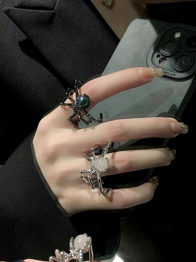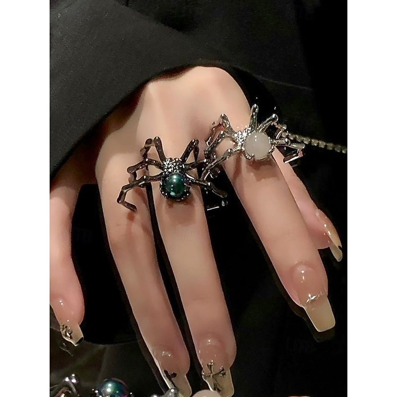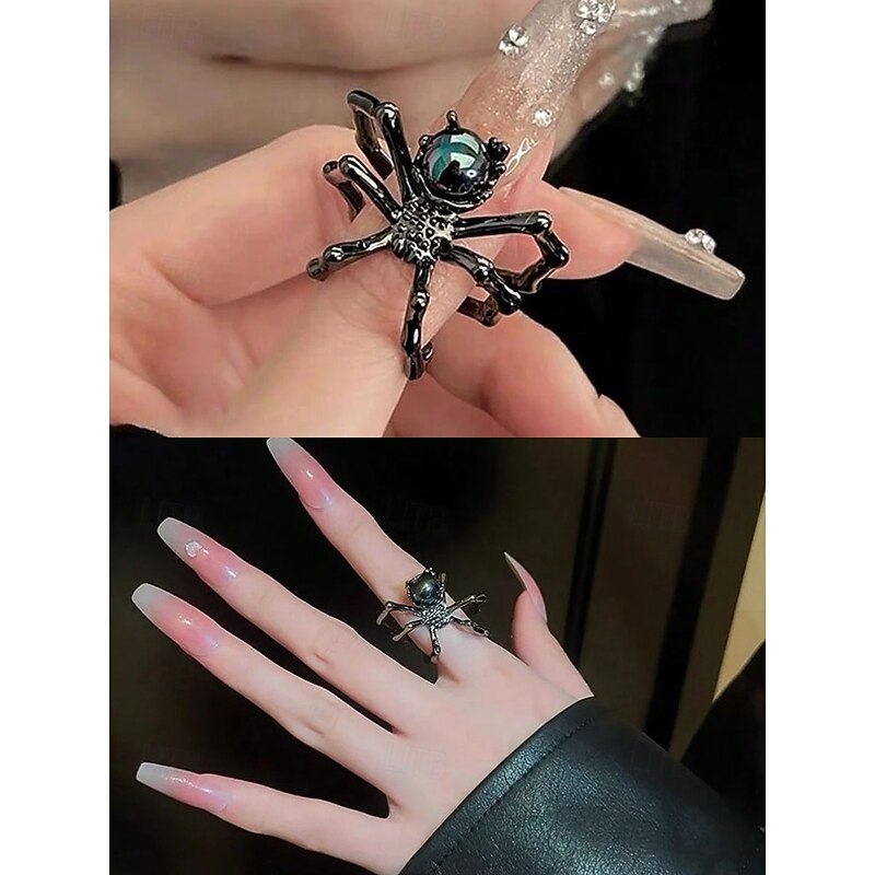 $7.99 - Women's Halloween Spider Ring Set – Adjustable Open Alloy Rings with Gothic Punk Style, Black and White Gem Spider Design for Costume Party, Cosplay and Spooky Night Out 2025. Shop for cheap Halloween Accessories online? Buy at lightinthebox.com on sale today!