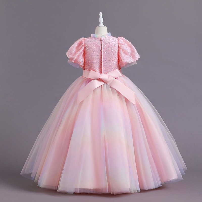 More information about Kids Girls' Party Dress Solid Color Short Sleeve Special Occasion Princess Polyester Party Dress Summer Spring 2-12 Years 4 years+ Champagne Pink Blue
