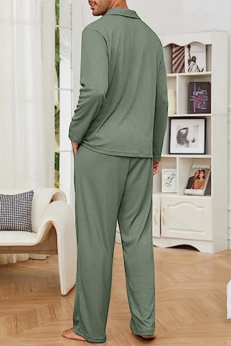 Andeip Men's Pajama Set Waffle Knit Lounge Pjs Set Long Sleeve Top and Pants Sleepwear 2 Piece Button Down Loungewear 2