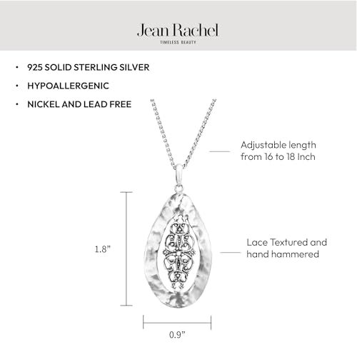HOT ! JEAN RACHEL JEWELRY 925 Sterling Silver Necklace for Women - Bold Lace Filigree Vintage Design - Hypoallergenic, Lead & Nickel Free Jewelry - Artisan Handcrafted Statement Necklace