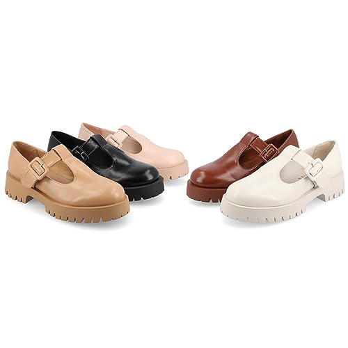 • SUVI MARY JANE FLAT: Step up your style game with the Suvi T-strap mary jane flats by Journee Collection. These fashionable flats feature a chunky 1 1/2-inch treaded sole that adds both height and stability to your stride. The buckle detail and round-toe design give these shoes a fun, 90s-inspired look. And with a vegan leather upper and 4mm Tru Comfort Foam insole, these shoes are both comfortable and supportive. Make a statement with Suvi.