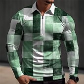 More information about Men's Plaid / Check Waffle Polo Shirts Polo Shirts Golf Polos Shirts Long Sleeve Polo Shirts Turndown Zip Casual Outdoor Casual Daily Streetwear 3D Print Spring Blue Green Khaki