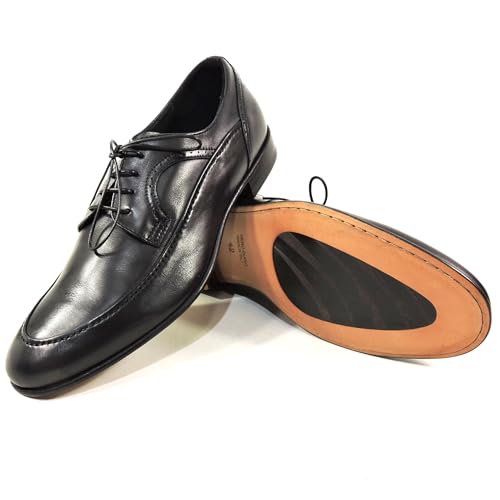 Renzo Mercuri Men's Black Leather Oxford Dress Shoes, 42.5 EU, 9.5 Wide 7