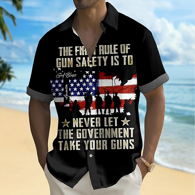 More information about Independence Day Men's US Flag Veterans Patriotic Shirt Summer Shirt Button Up Shirt Short Sleeve Fashion Casual Holiday Summer Spring Turndown 3D Print Collared Shirts Front One Pocket Black
