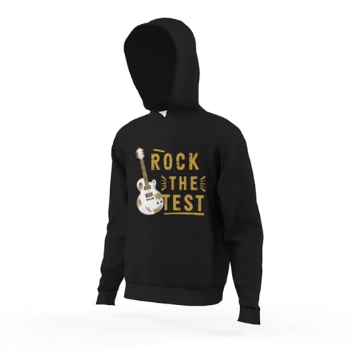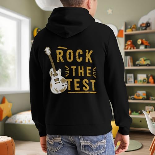 HOT ! Kids Funny Guitar Test Day Rock The Test Vintage Boys Girls Lightweight Kangaroo Pocket Fleece Hoodies