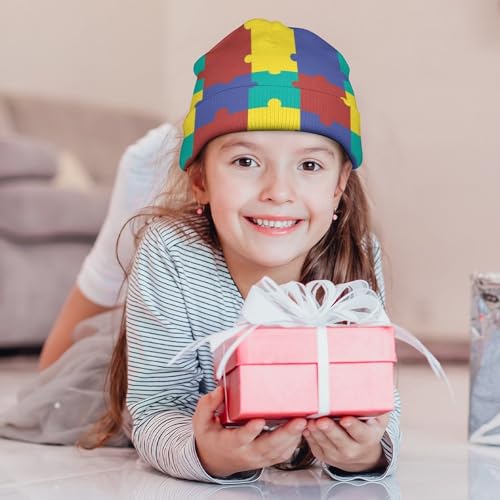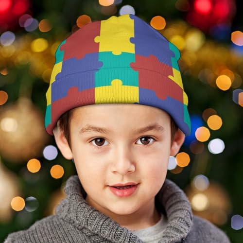 Autism Awareness Kids Beanie Hat for for Girls Boys Children Cap Winter Knitted Chemo Cancer Headwear Accessories Gifts Decoration Black 7