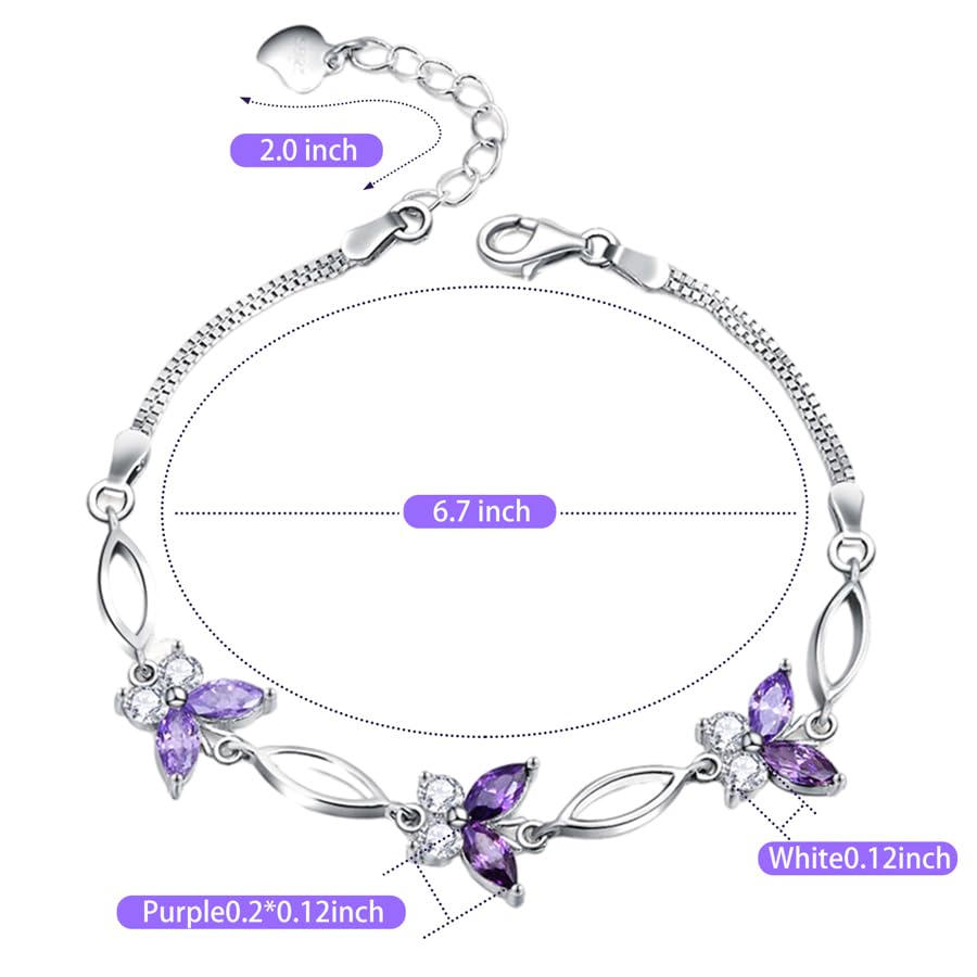 Gifts for Women S925 Sterling Silver Purple Butterfly Bracelet,Adjustable Charm Bracelets Jewelry Present for Women,Anniversary Holiday Christmas Birthday Gifts for Mother Wife Daughter 7