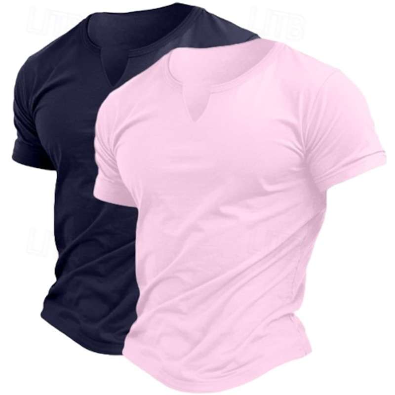 2 Pack Men's Cotton Blend T-Shirt Short Sleeve Crew Neck V Neck Summer All Seasons Plain Fashion Classic Casual 2 pcs Matching Street Casual Sports Top Tee for Men 7