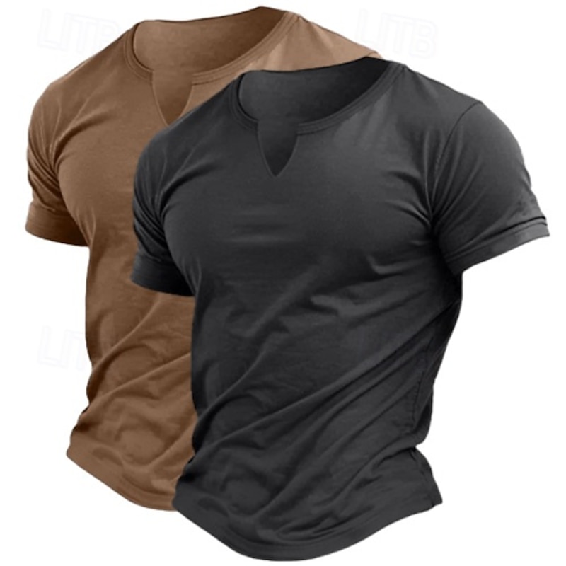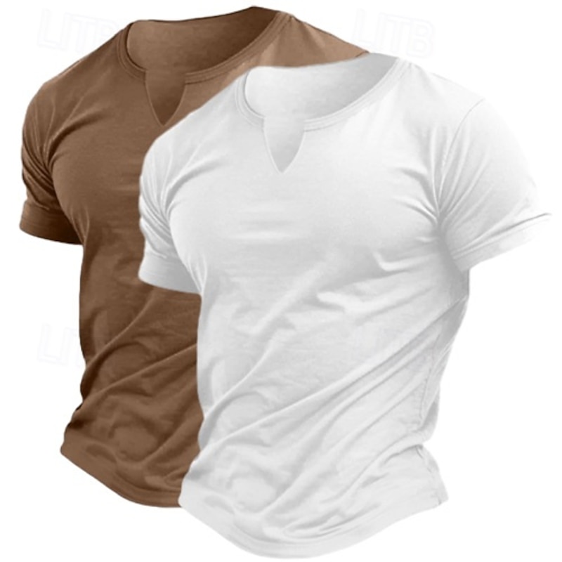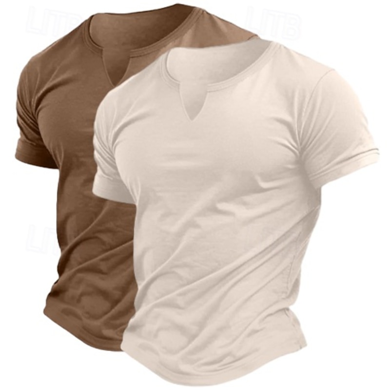 2 Pack Men's Cotton Blend T-Shirt Short Sleeve Crew Neck V Neck Summer All Seasons Plain Fashion Classic Casual 2 pcs Matching Street Casual Sports Top Tee for Men 15