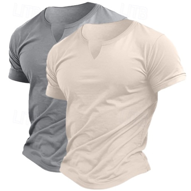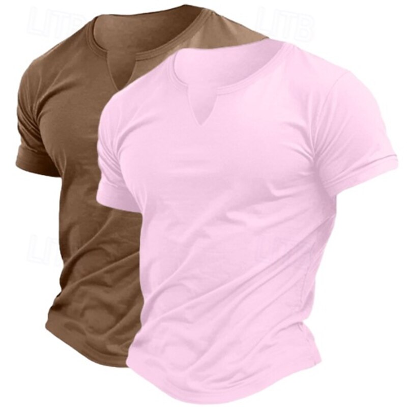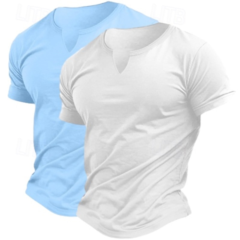 2 Pack Men's Cotton Blend T-Shirt Short Sleeve Crew Neck V Neck Summer All Seasons Plain Fashion Classic Casual 2 pcs Matching Street Casual Sports Top Tee for Men 25
