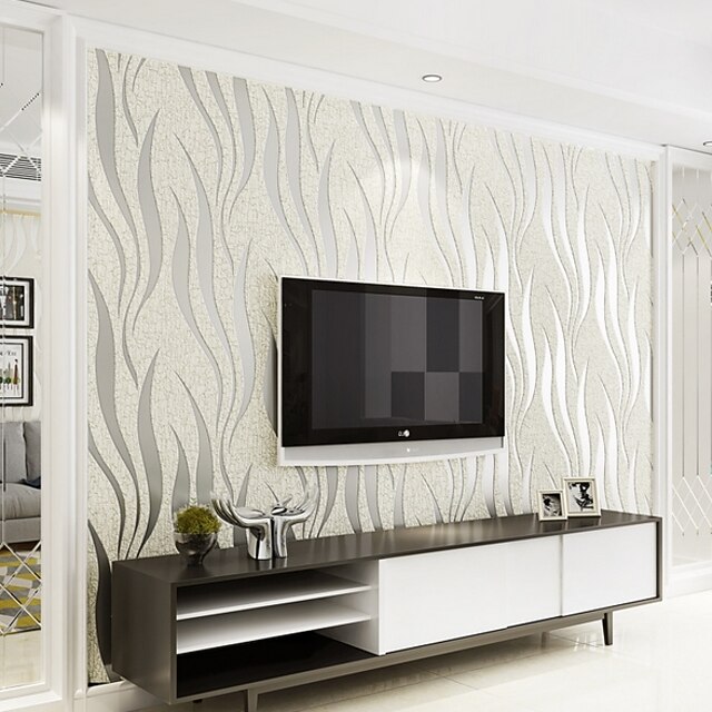 Strip Wallpaper Damask Wall Covering Sticker Film Flocking Non Woven Adhesive required Home Décor 1000x53cm/393.7x20.87inch 1