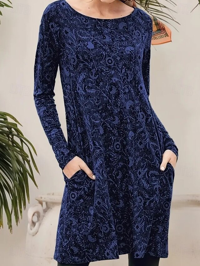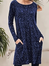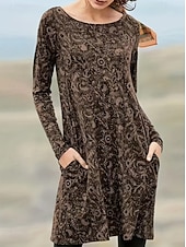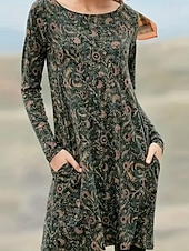 More information about Women's Midi Dress Paisley Dress Casual Dress Winter Dress T Shirt Dress Tee Dress Casual Date Regular Fit Floral Paisley Long Sleeve Crew Neck Dark Green Ink Blue Brown Fall Winter